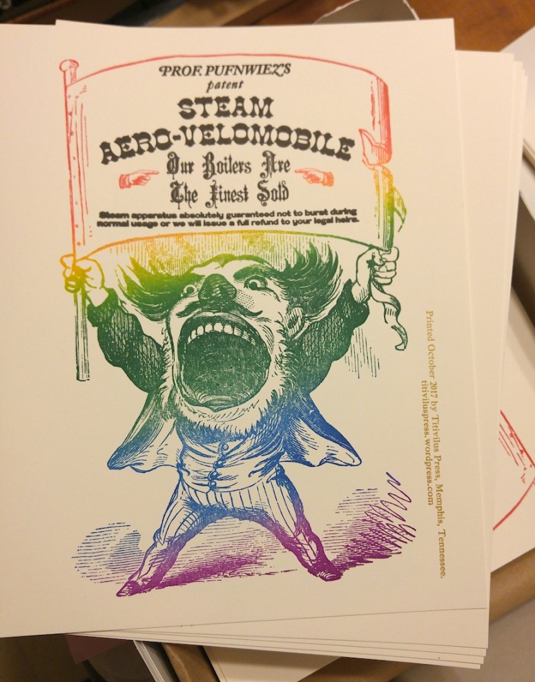 Michael is a professional graphic designer and design director in the printing trade who enjoys mucking about with obsolete printing equipment on the side. He is as skilled in hand-setting layouts from his archive of metal type and “cuts” as he is designing digital layouts in Illustrator or InDesign; which is to say, not incredibly great at either. But it’s still loads of fun either way!